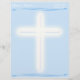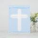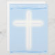 O timbrado apresenta design de cruz branca brilhante sobre fundo azul. Personalize com seu nome e endereço. Letra branca.