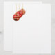 Três Enfeites de natal vermelhos e dourados pendem de correntes douradas nesta bela e festiva "Letterhead" de férias. Perfeito para toda a sua correspondência de Natal!
