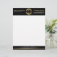 Legant Professional Law Firm Letterhead apresenta o logotipo da lei em ouro em fundo preto. Personalize com seus detalhes em letras de blocos de tendência. Clique em personalizar para editar este modelo. Todo texto pode ser personalizado.
