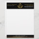 Legant Professional Law Firm Letterhead apresenta o logotipo da lei em ouro em fundo preto. Personalize com seus detalhes em letras de blocos de tendência. Clique em personalizar para editar este modelo. Todo texto pode ser personalizado.