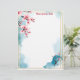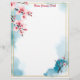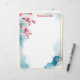 As cerejeiras cor-de-rosa que florescem nos cantos superior esquerdo e inferior direito de um quadro de ouro, num fundo de aquarela azul e branca tornam este papel de carta perfeito para a sua correspondência, newsletters ou convites. Um tema inspirado na Ásia.