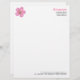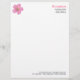 Uma cartola comercial com um símbolo de gerânio rosa/logotipo decorativo. Detalhes da empresa e do endereço no canto superior direito com detalhes da Web e do telefone alinhados na parte inferior, aproximadamente 1/2" à direita para equilibrar o texto da carta de forma atrativa. O design pode ser personalizado de várias maneiras, e o logotipo pode ser substituído. Você também pode alterar a cor de fundo.