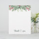 Cartões de agradecimentos de inverno verde. Este design apresenta uma ilustração dos folhetos dos pinheiros e folhagem verde com bagas vermelhas em fundo branco. O texto "Obrigado" está escrito no estilo caligrafia. Personalize com seu próprio texto.