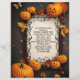 Jack O'Lanternas e suas vinhas e folhas brilhantes, com duas borboletas de rabo-de-banho, fazem um belo e elegante convite para a festa do Dia das Bruxas em papel padrão, de tamanho-letão. Mostrado é para uma festa adulta, mas essa design funcionaria igualmente bem para adolescentes ou crianças.