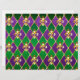 joias, fundo em Mardi Gras de losango roxo e verde, lírios de ouro decorados.