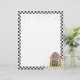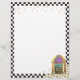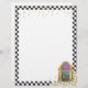 Retro jukebox com quadro de quadro de xadrez preto e branco e papel de papelão para notas de música dourada.