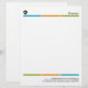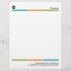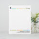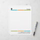 Um design de modelo com duas linhas, cada uma com três cores. Essas linhas são colocadas acima e abaixo a 1,5 polegadas e têm margens de 0,5 polegada. Um pequeno logotipo decorativo (que pode ser substituído pelo seu próprio logotipo ou um símbolo diferente) é colocado à esquerda, com o nome da empresa à direita acima da linha de tricoloração superior. Email, endereço da Web e detalhes de telefone são colocados a 0,5 polegada da parte inferior. Esse design profissional simples, mas atraente, pode ser personalizado de muitas maneiras.