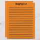 O título e as linhas da Lista de compro estão na frente junto com um fundo laranja. No verso há um fundo laranja com linhas.