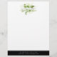 O Elegante design botânico letterhead exibe seu nome e/ou nome comercial enquadrado por um logotipo verde de cor d'água em tons de verde-férn e floresta. Adicione as informações de contato da sua empresa ao longo da parte inferior em branco sobre o preto rico em contraste.