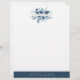 O Elegante design botânico letterhead exibe seu nome e/ou nome comercial enquadrado por uma borda de folhagem de cor d'água em tons azuis. Adicione as informações de contato da sua empresa ao longo da parte inferior em branco sobre como coordenar o porto azul.