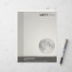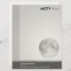 Um moderno diretor de cartas de negócios com um motivo de lua. O rodapé que está coberto com uma banda mais leve é de 1,5 pol e contém detalhes de endereço e contato telefônico. Os detalhes da Web e do e-mail estão na borda mais clara à direita A margem sombreada à esquerda tem 1,37 pol de largura. Como as margens na maioria dos processadores de texto padrão são 1,5 pol, isso deve fornecer um deslocamento de 1/8 pol quando você digita uma letra usando padrões.