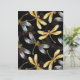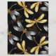 Padrão sem costura com ouro, joias, libélulas brilhantes com asas brilhantes e detalhadas sobre fundo preto. Dourada libélula.