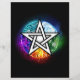 Pentagrama luminoso desenhado artificialmente com cinco elementos mágicos, água, terra, fogo, astral, ar sobre fundo negro. Pentagrama Wiccan. Wicca