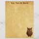 Uma coruja bonita feita de escamas de pínus sobreposta a uma imagem antiga de fundo de papel. Personalize adicionando seu próprio texto.Você pode alterar a fonte e a cor do texto.