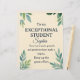 Celebrar um estudante verdadeiramente excepcional com este cartão de parabéns elegante, projetado para professores, escolas e pais orgulhosos que querem honrar a realização acadêmica de uma forma significativa. Apresentando um fundo em estilo de pergaminho suave com folhas de cor d'água e sotaques dourados, esta placa fornece uma mensagem sincera: "Para um ESTUDANTE EXCEPCIONAL - O seu trabalho de duro, crescimento e positividade causaram impacto. Continue o esforço do excelente." 🎓 Adicione o nome do seu aluno para criar uma manutenção personalizada que eles vão tesourar. Seja para graduação, prêmios de fim de ano, ou reconhecimento em sala de aula, este cartão é a maneira perfeita de dizer "Eu vejo seu esforço, e estou orgulhoso." O design é ideal para meninos e meninas adolescentes, e o campo de nomes é totalmente editável para se adequar a qualquer estudante ou ocasião.