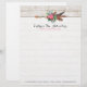 Papel Timbrado Ponta de Flecha Bohemiana com Pena e Rosa em Madei