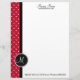 Artigos de papelaria/cabeçalho personalizados: Os pontos vermelhos e brancos tradicionais projetam/dos bares e monograma do preto acento do quadro