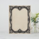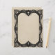 Uma intrincada armação preta com crânios nos centros de cima e de baixo, sobre um fundo pergaminho envelhecido cria a perfeita papelaria do Gótico. Muito bonita e escura.