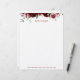 Papel de carta floral de cor-de-água, com coloração aquosa, pintado de peões vermelhos profundos e pulverizações de verduras de eucalipto prateado.