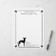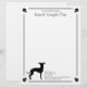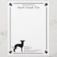 O design original da silhueta negra de Destei de um lindo cão da raça Greyhound. O cachorro é colocado em um canto e o design é enquadrado por bordas que têm uma pata de cachorro em cada canto. No topo há duas áreas de texto personalizáveis e na parte inferior há três áreas de texto personalizáveis perfeitas para informações de contato e endereço.