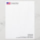 Um título comercial com uma bandeira colocada a 1/2" da esquerda e do topo. Nome da empresa e tipo de negócio, slogan ou citação à direita da bandeira. Endereço, Web/e-mail e detalhes de telefonia na parte inferior, aproximadamente 1/2" à direita e cerca de 1/4" à parte inferior. Este modelo está pronto para ser personalizado com seus detalhes. O design pode ser personalizado de várias maneiras.