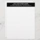 Os designs de textos simples e simples são frequentemente fáceis de entender e lembrar. Texto simples Cabeçalho design de letterhead que você pode personalizar para anunciar sua empresa ou para promover seu nome de marca para clientes ou clientes. Fornecimento personalizável de escritório que você pode usar para criar reconhecimento de nome de marca. O design do título é constituído por textos brancos planos alinhados ao centro sobre fundo preto. O conteúdo é o nome, endereço, número de telefone, e-mail e site da sua empresa ou empresa.