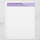 Os designs de textos simples e simples são frequentemente fáceis de entender e lembrar. Texto simples Cabeçalho design de letterhead que você pode personalizar para anunciar sua empresa ou para promover seu nome de marca para clientes ou clientes. Fornecimento personalizável de escritório que você pode usar para criar reconhecimento de nome de marca. O design do título é constituído por textos claros, roxos e escuros, alinhados à esquerda sobre fundo roxo claro. O conteúdo é o nome, endereço, número de telefone, e-mail e site da sua empresa ou empresa.