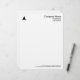 Uma folha comercial com um símbolo de triângulo curvo/logotipo decorativo. Detalhes da empresa e do endereço no canto superior direito com detalhes da Web e do telefone alinhados na parte inferior, aproximadamente 1/2" à direita para equilibrar o texto da carta de forma atrativa. O design pode ser personalizado de várias maneiras, e o logotipo pode ser substituído. Você também pode alterar a cor de fundo.