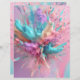 Um desenho abstrato de tinta explosiva com efeito falso 3d numa paleta colorida de rosa, turquesa, lilac, coral e marfim.