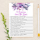 Esta é uma 20 perguntas sobre o Jogo do Chá de panela Bridal. 20 perguntas sobre a noiva - A noiva preencherá sua própria ficha de resposta pessoal. Os hóspedes preencherão as respostas às perguntas da melhor forma possível, dadas as suas próprias competências pessoais sobre a noiva. Quem tiver as respostas mais corretas, ganha! Flores florais roxas mauve plum violet lavanda lilac, jogos de chá de panela, 20 perguntas sobre a noiva, noiva a ser, conheça a noiva, jogo de chá de panela, atividades de chá de panela