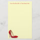 A bomba vermelha do salto alto da forma calça os artigos de papelaria de papel. Um par de saltos altos ou de estiletes vermelhos, é o emblema para a parte inferior de cada folha. Personalize-o adicionando seu nome da empresa ou seu nome e exprimindo - ou suprima-o do fraseio para uma folha lisa do papel bonito, ou o uso edita para mudar também a cor do fundo. Apenas use personalizam todas as mudanças. Você pode precisar de clicar fora da caixa de texto às mudanças finalizadas do fraseio.