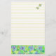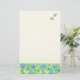 Papel de papelaria amarelo bonito, decorado com uma borda de flores azuis periwinkle e abelhas pintadas com aquarela. Excelente para cartas, listas, registro em diário e muito mais. E um belo presente para um apicultor!