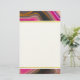 Papel de papelaria com um design abstrato de aparência ranhosa. As cores rosa e preta misturam-se e unem-se num movimento giratório. Espelhos de dourada falsa entre as camadas. Uma estrutura retangular branca com uma borda falsa de folha de ouro, colocada sobre cima para você escrever dentro.