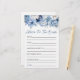 Este é um Conselho Floral Azul Dusty para o Jogo do Chá de panela Noiva. Aconselhamento para a noiva - Escreva palavras significativas de conselho para a noiva ser!