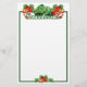 Muitos morangos coloridos, as plantas em que cresceram, com pequenos corações de morango vermelho, e a palavra STRAWBERRIES completa o design. papel de carta Bonito para amantes desta fruta de verão favorita!