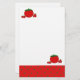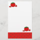 Envie uma nota sobre esta papelaria de jardim divertido com tomate vermelho maduro. Uma borda vermelha com pontos verdes.