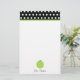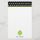 Artigos de papelaria para os professores que caracterizam uma beira do preto com bolinhas brancas e da guarnição verde na parte superior. Ilustração de uma maçã verde no fundo. Personalize com seu nome sob a maçã. Artigos de harmonização Look for no Paperie de Jill.