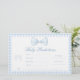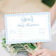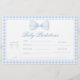 Cartões de previsão de chá de bebê pré-descartáveis, com um arco azul de bebê encantador em um padrão clássico de gingham. Estas cartas bonitas e divertidas são perfeitas para adicionar um toque doce às suas atividades de chá de fraldas, fazer a sua celebração memorável e interativa! Ideal para um evento de na moda e bebê brincalhão.