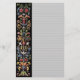 Papelaria única com linhas de luz e arte gótica de safra de um antigo manuscrito iluminado com flores coloridas e folhas de rolagem sobre fundo preto.