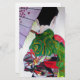De uma pintura original a aquarela do artista Sacha Grossel, de uma Geisha Japonesa, com um quimono verde e elegante e um obi preto e vermelho segurando um guarda-chuva roxo decorado com flores. Esse design inspirado em japonês e Kyoto é influenciado pela arte oriental e asiática e pelo tradicional design da moda japonesa.