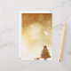 Um precioso e elegante ilustração de Feliz Natal com uma árvore de Natal e uma bola de árvore de Natal com uma fita em ouro nobre sobre um cintilante fundo festivo.
