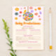 Esta é uma vintagem hippie hippie retro de 70 anos, projetada para a atividade de previsão de chás de fraldas. Permite aos hóspedes adivinhar o sexo, a data de nascimento, o tempo, o peso, a cor do cabelo, a cor do olho, o comprimento, etc. Há também uma linha para dar conselhos. anos setenta de bola de disco vintage laranja rosa