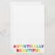 Design feito com amor pela Consciência Autista. As letras do arco-íris dizem o óbvio... que você ou um amado é 'Autisticamente Bonito'!