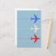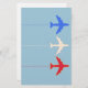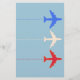 Planos azuis, brancos e vermelhos alinhados com rotas pontilhadas