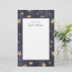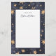 Esta elegante e moderna papelaria apresenta um fundo azul rico e marinho com estrelas elegantes e falsas celestiais de ouro, e uma área central branca para escrever a sua carta.
