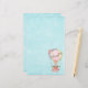 Papel de papelaria com um adorável design com ilustração de aquarela. Um balão de ar quente decorado com flores bonito, vermelhas e rosa. Um pequeno ursinho branco giro sentado na cesta. Fundo azul claro.