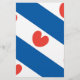 Bandeira da Frísia, uma província dos Países Baixos. É constituído por faixas diagonais azuis e brancas; nas listras brancas estão a pompa vermelha, folhas da lírio-d'água amarela, que podem lembrar um coração, mas, de acordo com as instruções oficiais, "não devem ter forma cardíaca".