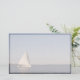 Um barco solitário navegando na costa de Portsmouth New Hampshire. Isto faz um belo fundo náutico para a sua papelaria. Correspondente à Letterhead disponível.