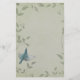 Linda pintura de um pássaro branco azul voando para cima colocado sobre um fundo verde-cinza macio com cipós elegantes. Saia da multidão com esta bela e elegante papelaria única. A design recebe uma textura de tecido invertida para efeito. Esta design também vem em muitos outros produtos de papelaria para se adequar a todas as suas necessidades de casamento.