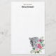 Papel de carta com uma bela ilustração com uma cinza, um retrato de leopardo preto e branco. Este adorável animal está cercado por um buquê de flores tropicais. Elegante, exótico e adorável.